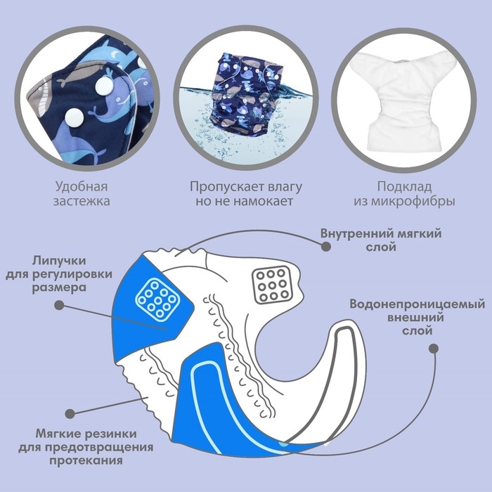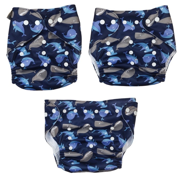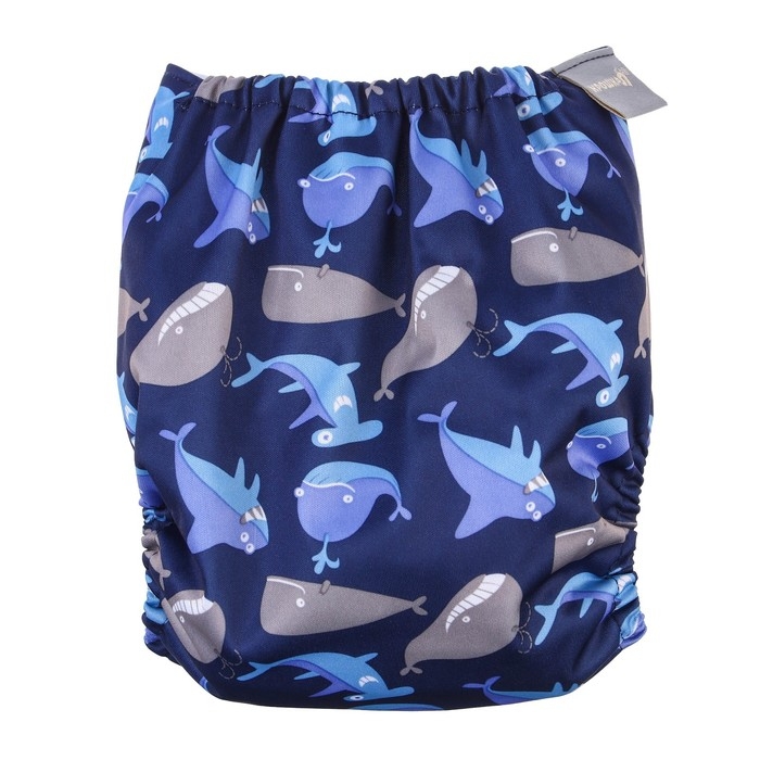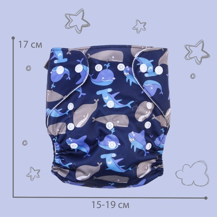 Многоразовый подгузник «Киты», 3-15 кг, цвет синий, Крошка Я