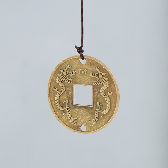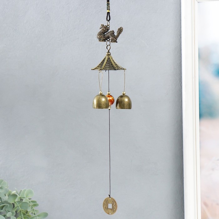 Музыка ветра металл "Дракон и монета" 3 колокольчика 30 см