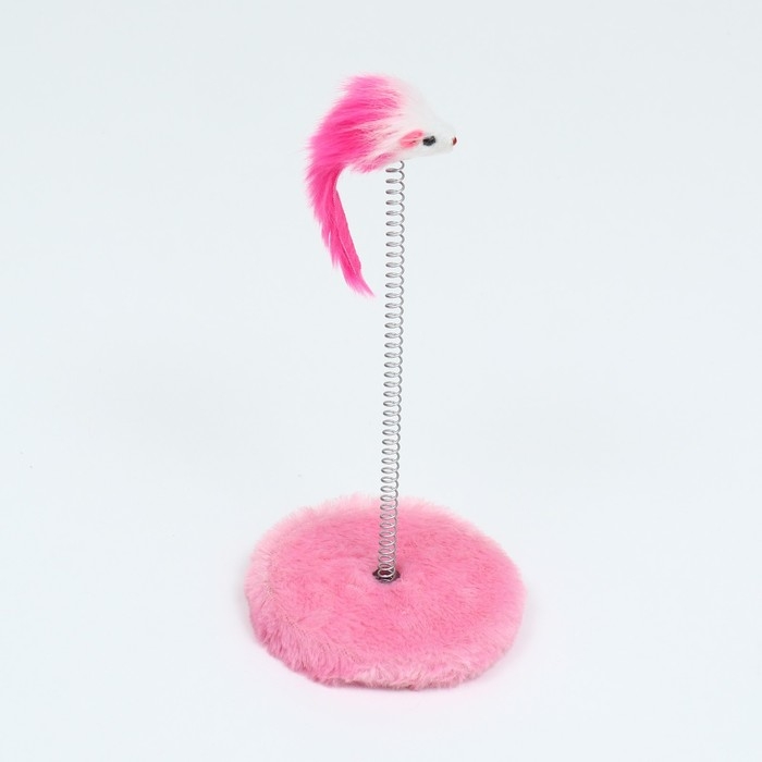 Дразнилка для кошек на пружине с мышью (5 см), 10,5 х 23 см, розовая