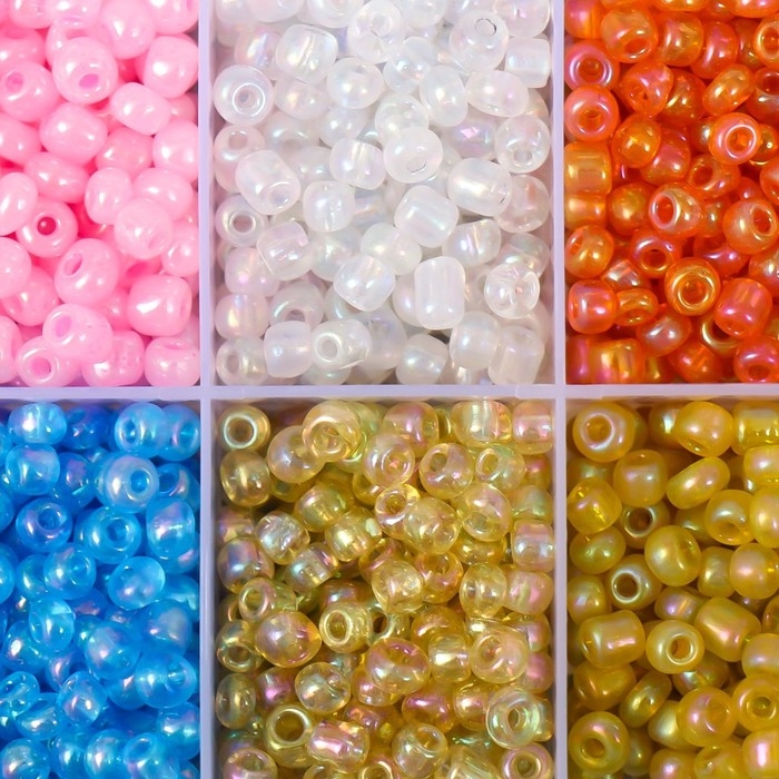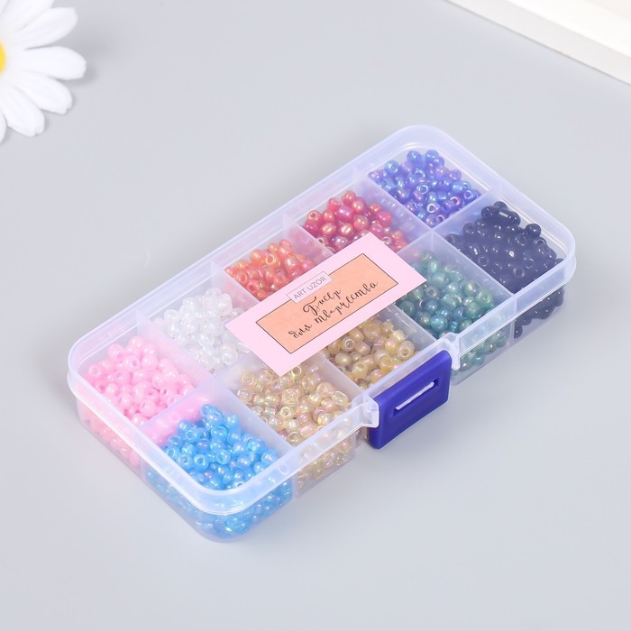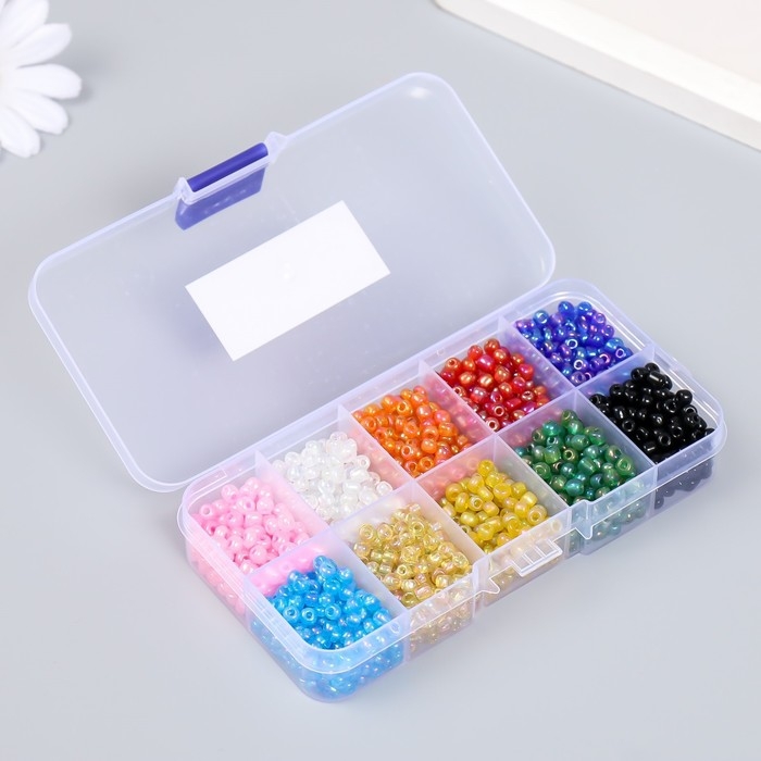 Бисер стекло 6/0 в шкатулке 10 делений "Разноцветный" 1 деление=10 гр 12,8х6,5х2,2 см