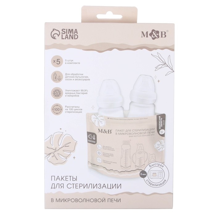 Пакеты для стерилизации бутылочек в микроволновой печи, набор 5 шт., Mum&Baby