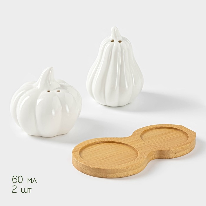 Набор для специй на деревянной подставке BellaTenero, 4 предмета: солонка 75 мл, перечница 75 мл, салфетница, ёмкость для зубочисток, цвет белый