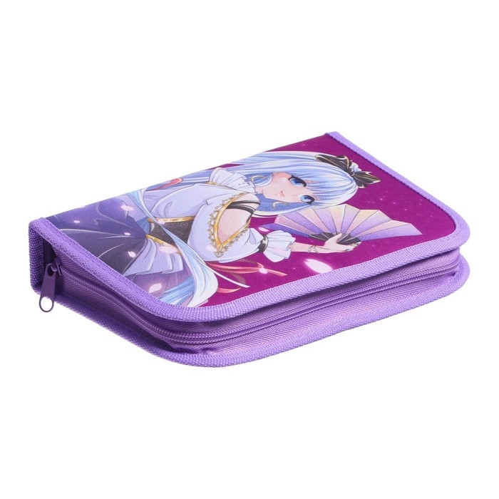 Пенал 3 секции, вкладка внутри, 140 х 210 х 40 мм, тканевый, Calligrata TOP Block "Аниме"