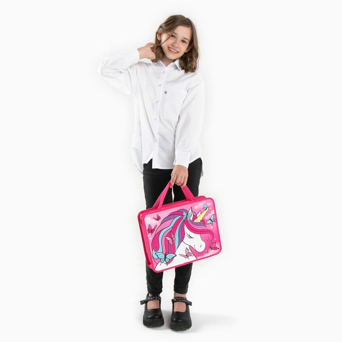 Папка пластиковая с ручками А4, на молнии, 75х330х260 мм, Минни Маус и единорог