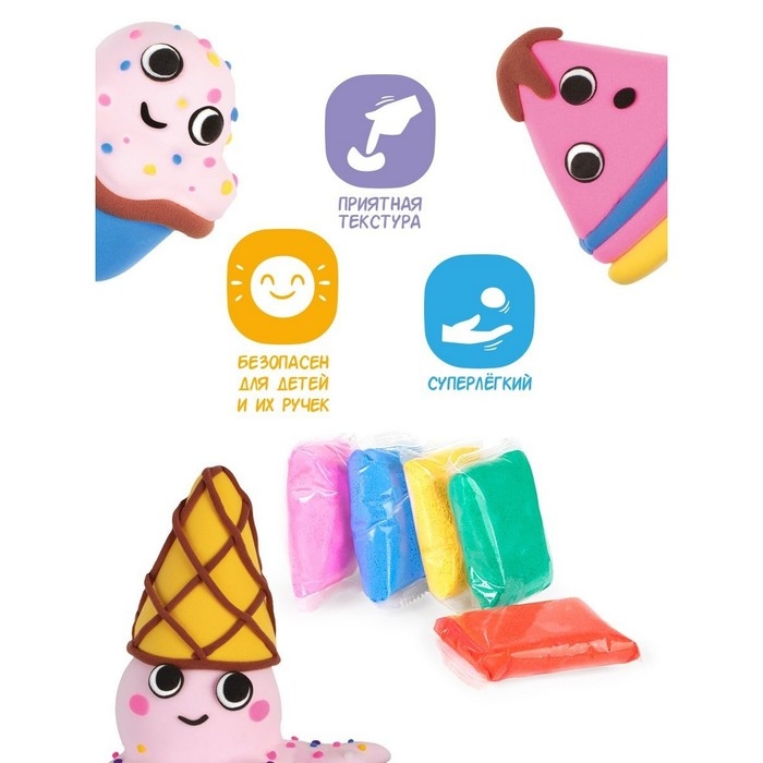 Лёгкий пластилин — необычная масса для лепки, она не прилипает к поверхностям и абсолютно безопасна для кожи. Цвета можно смешивать между собой и создавать новые оттенки. Пластилин можно крутить, сворачивать и придавать любую форму. Набор для лепки вдохновит на безграничное творчество.