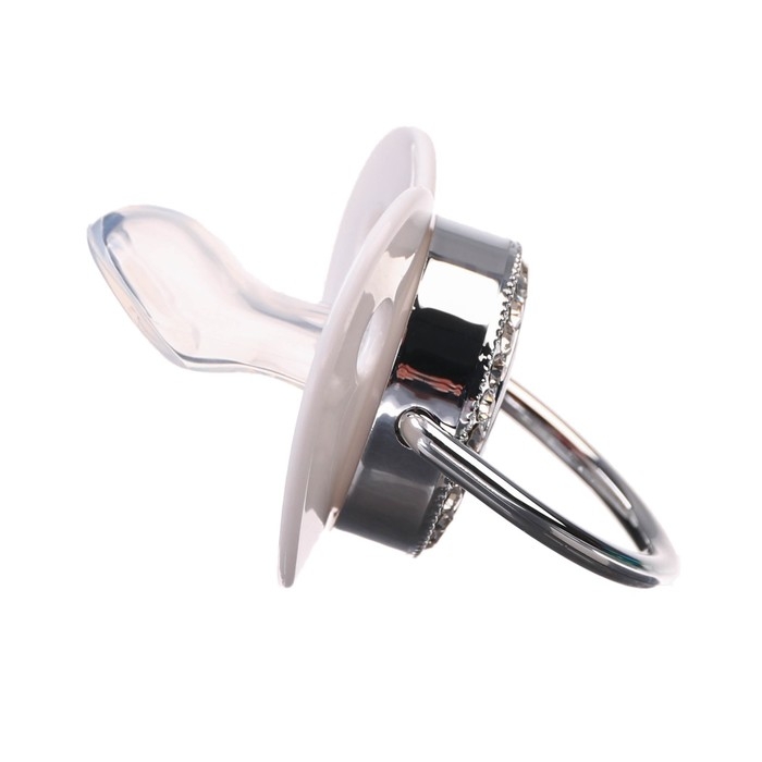 Роскошная пустышка со стразами и держателем для соски. Соска со стразами ортодонтической формы скошенная. Современный и модный дизайн пустышки со стразами не оставит равнодушным никого из взрослых и детей. Очень стильная и модная детская соска с инициалами повторяет форму соска материнской груди во время кормления. Даже детки с зубами могут пользоваться ей, ведь она очень плотная.