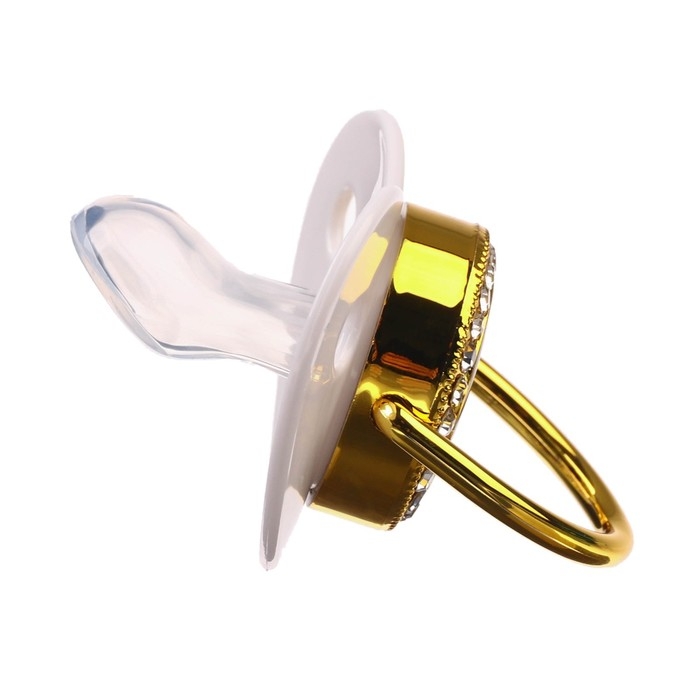 Соска - пустышка силиконовая ортодонтическая «PRINCESS», от 6 мес., с колпачком + держатель - цепочка, цвет белый/золото, стразы