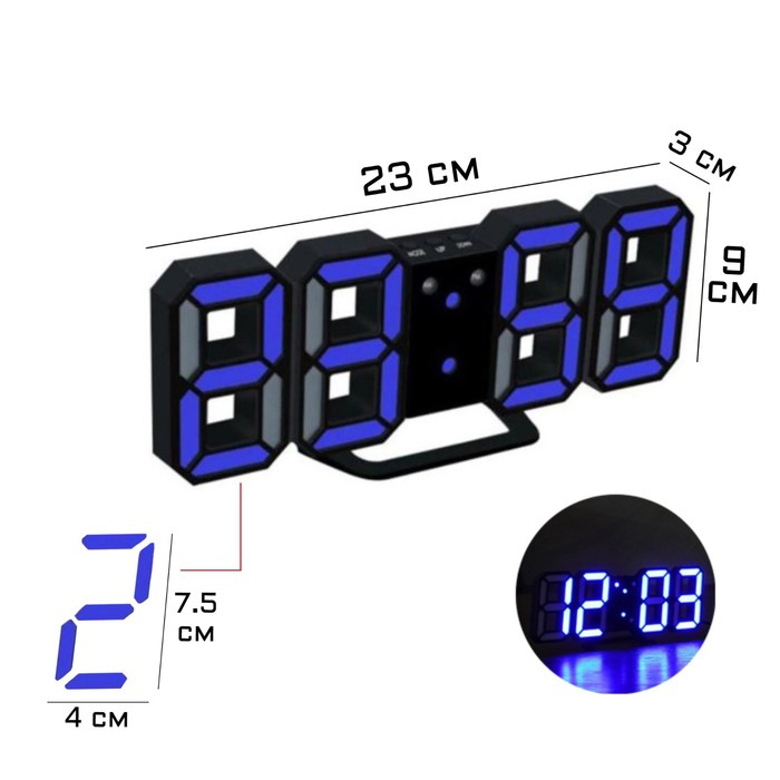 Часы электронные настольные "Цифры", с подвесом, синяя индикация, 9 х 3 х 23 см, от USB