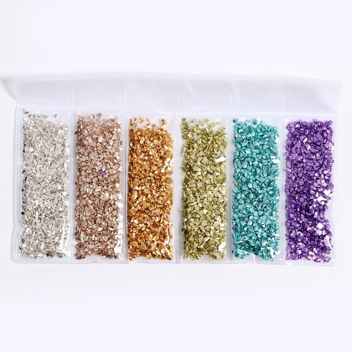 Крошка стеклянная для эпоксидной смолы, набор 6 цветов, вес 1 цвета — 5 г