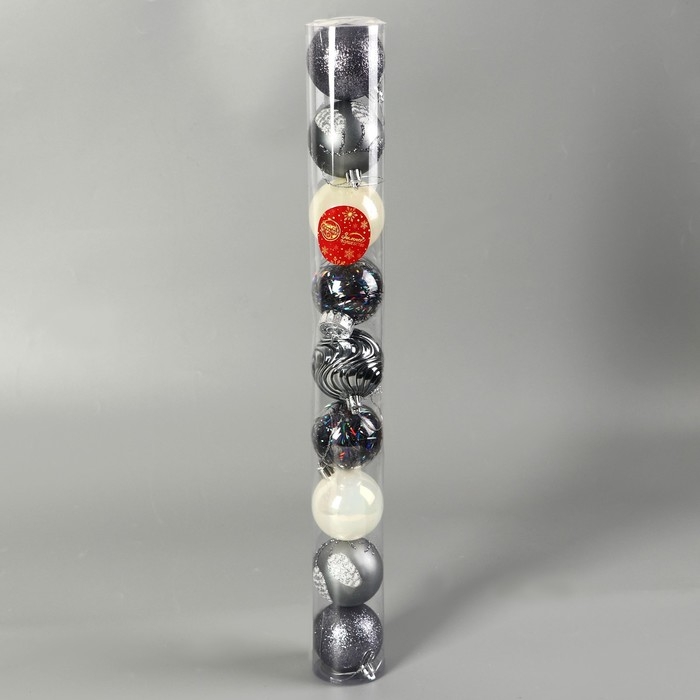 Набор шаров пластик d-6 см, 9 шт "Мелодия" волны диско, серый белый