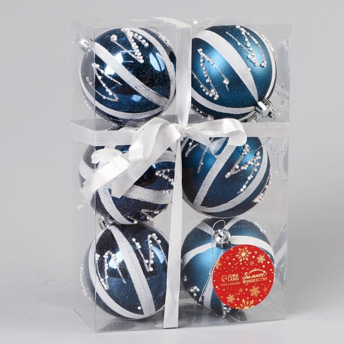 Набор шаров пластик d-7 см, 6 шт "Маскарад" синий