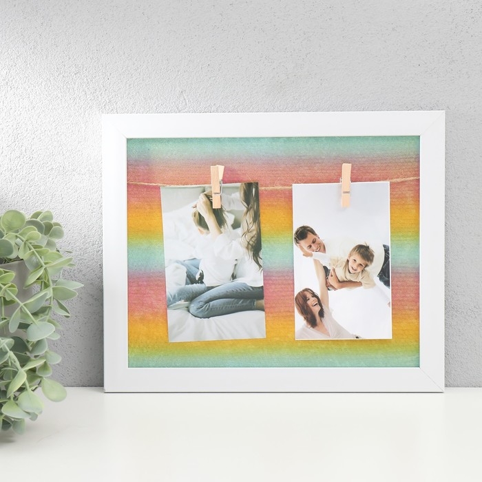 Фоторамка пластик, текстиль на 2 фото "Рассвет" с прищепками, белый 27,7х23 см