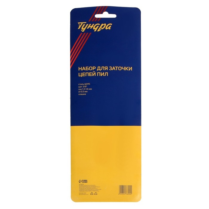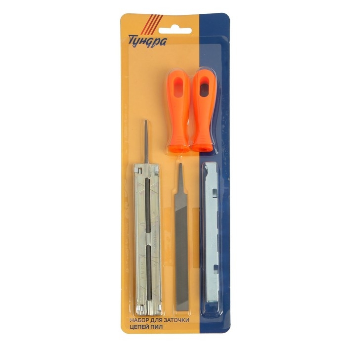 Набор для заточки цепей пил ТУНДРА, сталь ШХ15, шаг 3/8", паз 1.3-1.6 мм, d=5.5 мм, плашки