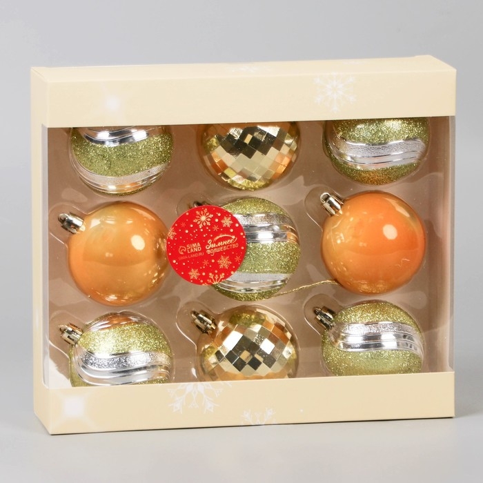 Набор шаров пластик d-6 см, 9 шт "Адель" диско, зелёный золото