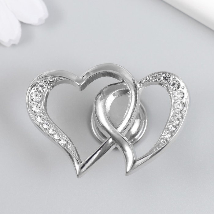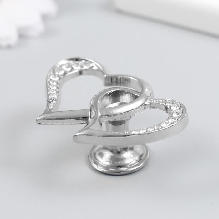 Ручка для шкатулки металл "Два сердца" стразы, серебро 3,8х5,4х2,4 см
