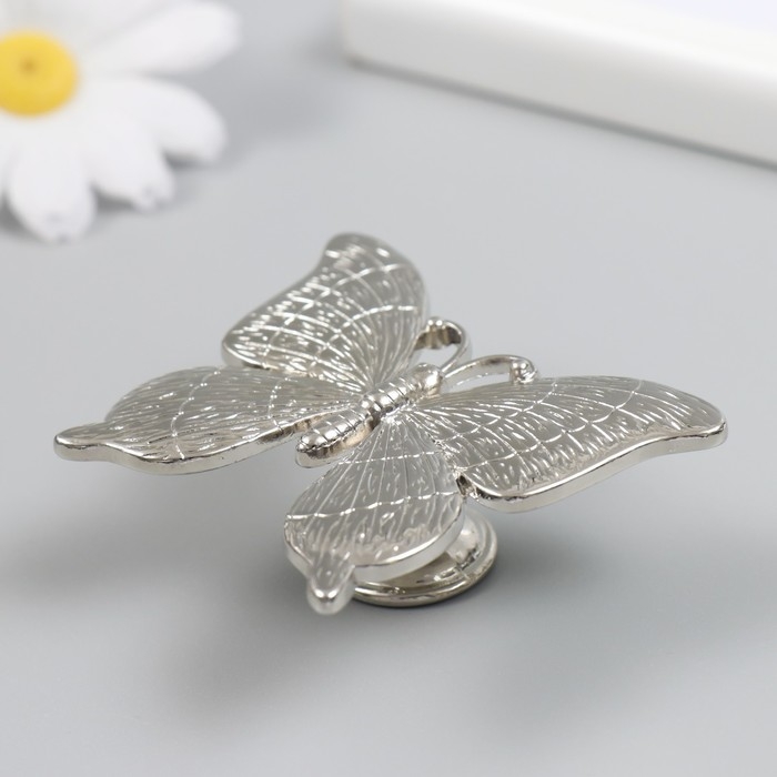 Ручка для шкатулки металл "Бабочка" серебро 5,2х6,3 см