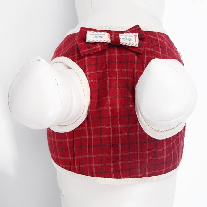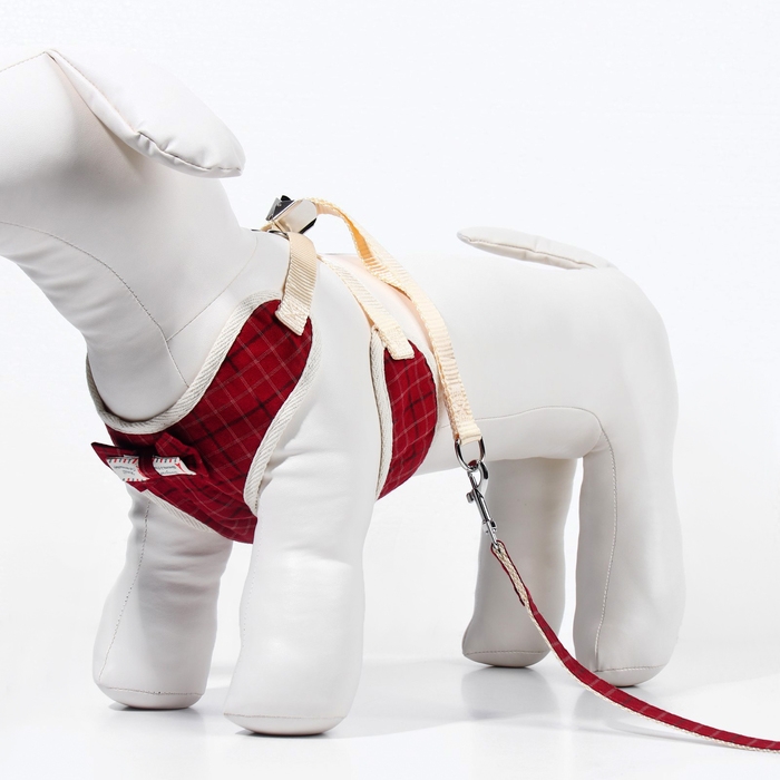 Комплект с мягкой шлейкой "Клетки", размер L, поводок 120 х 1,5 см, ОГ 42-76 см, красный