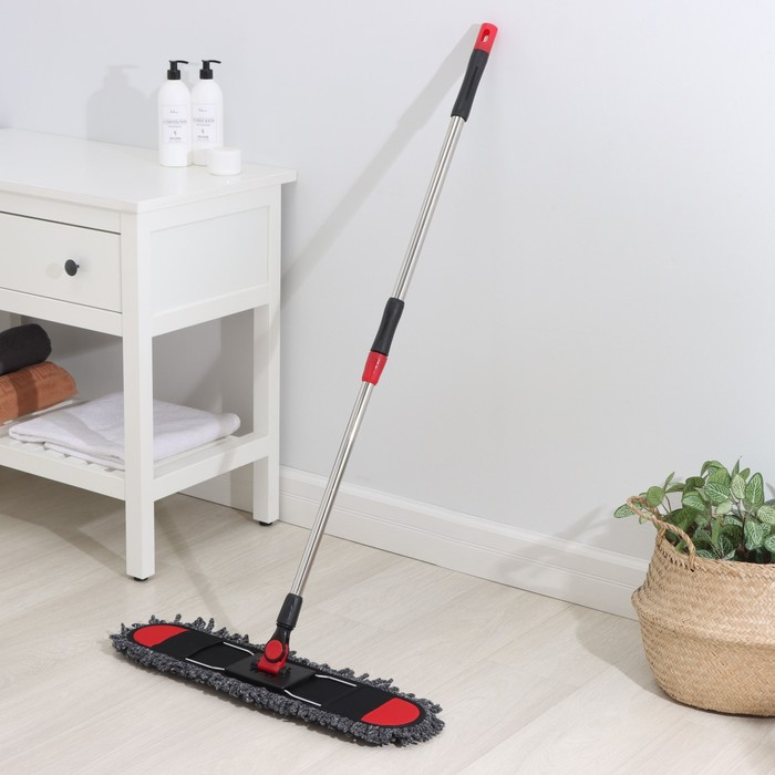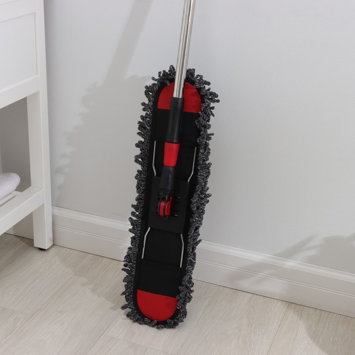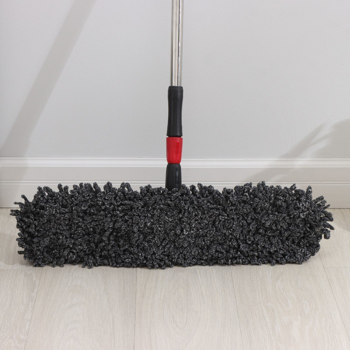 Швабра для мытья пола Доляна, плоская, микрофибра букли, железный флаундер, телескопическая стальная ручка, 62×13×84(130) см