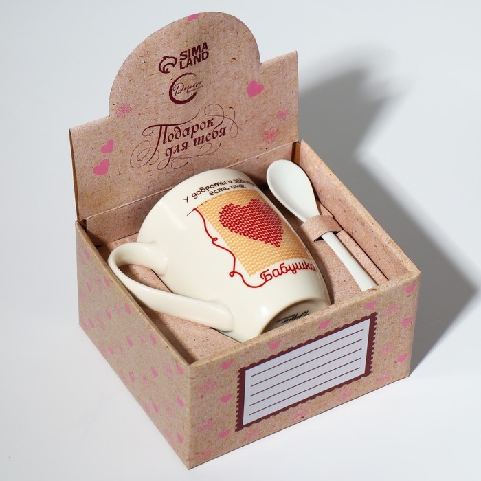 Кружка керамическая с ложкой «Бабушка», 310 мл, цвет белый