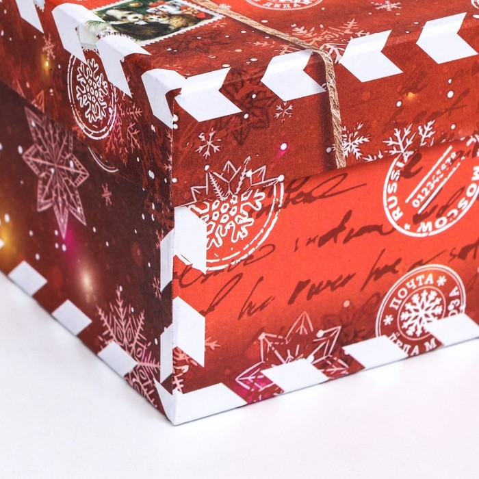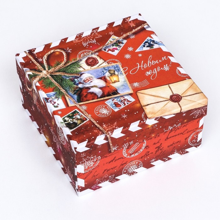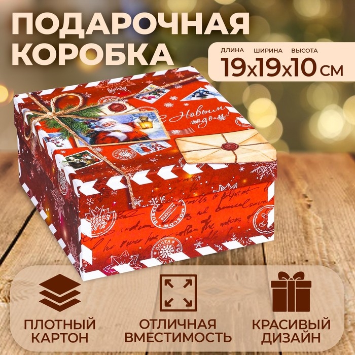 Коробка квадратная "Посылка красная" , 19 × 19 × 10 см