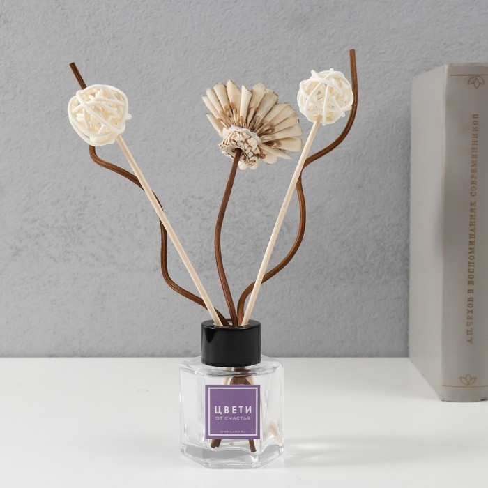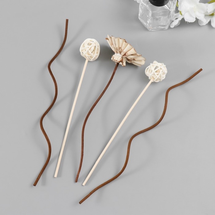 Палочки для аромадиффузора "Цветок лотоса" набор 5 шт + 2 шарика из ротанга