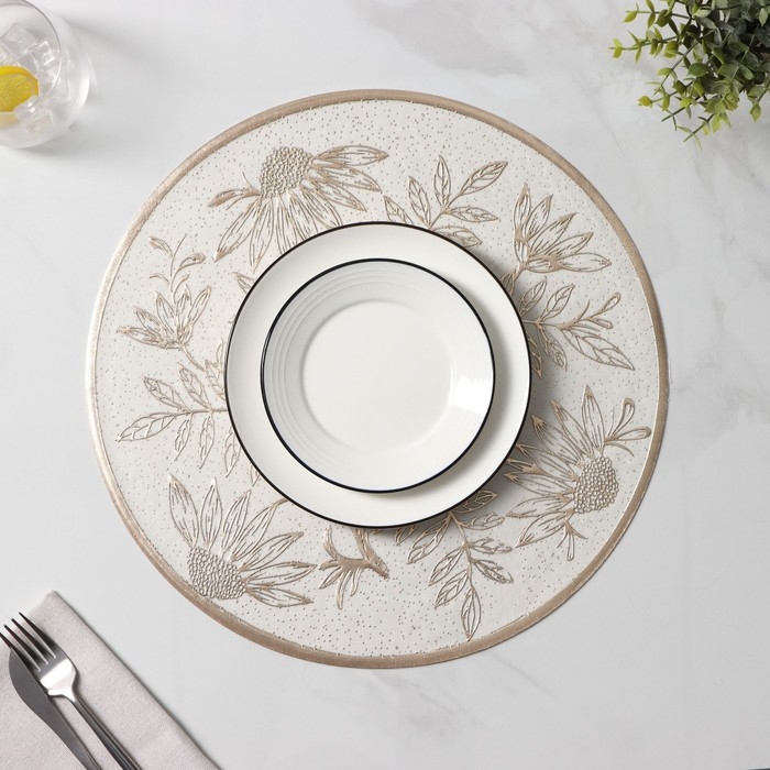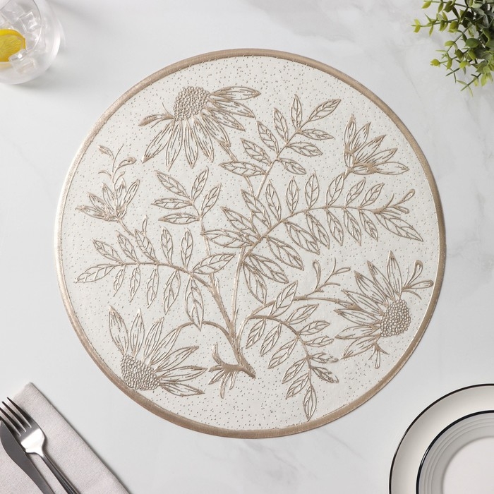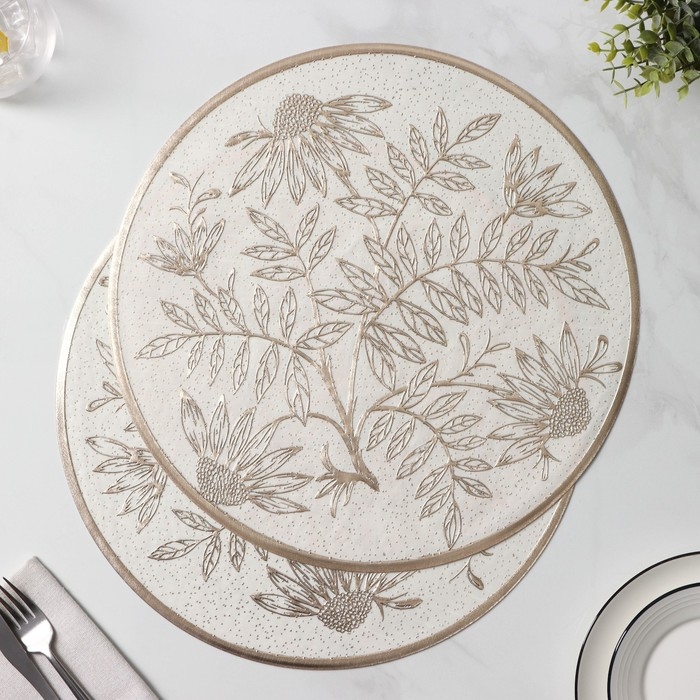 Салфетки сервировочные на стол Доляна «Ботаника», 2 шт, d=38 см, цвет бежевый