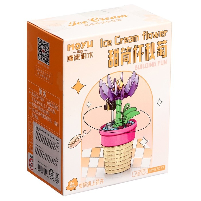 Конструктор Цветы «Гвоздика в горшочке с пчёлкой», 64 детали