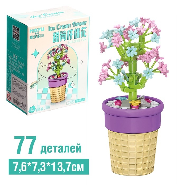Конструктор Цветы «Сакура в горшочке», 77 деталей