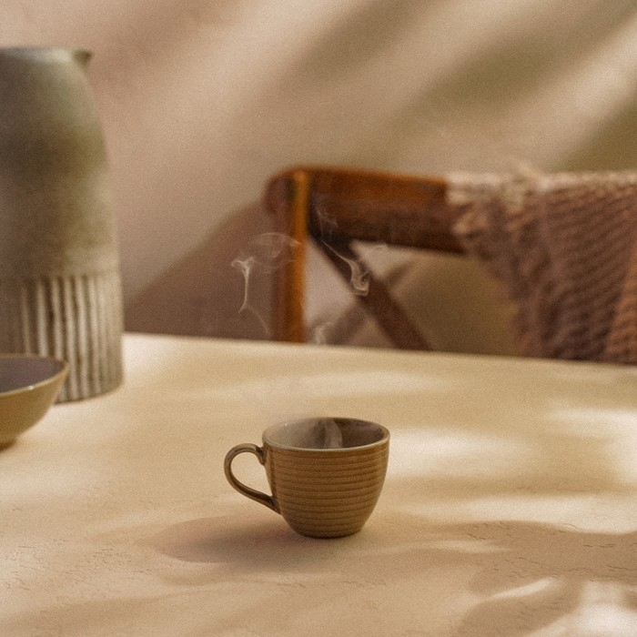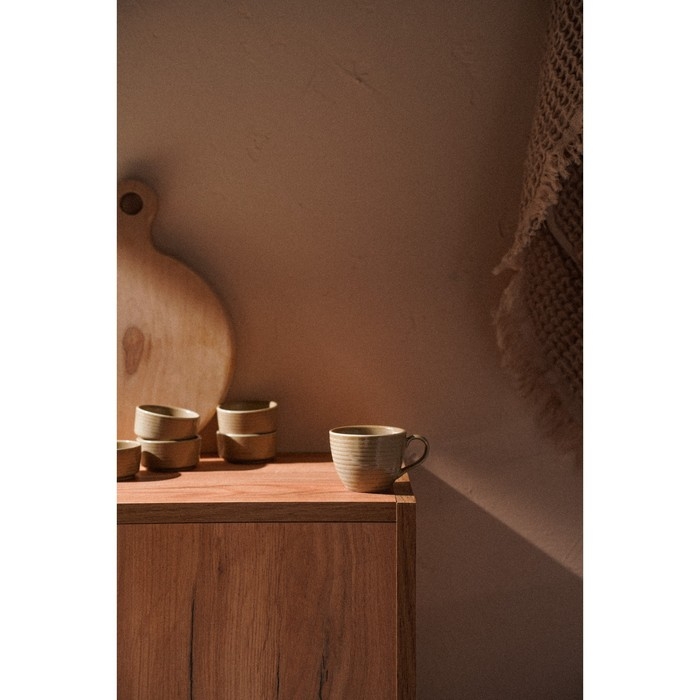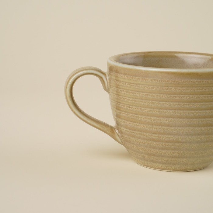 - Элегантный дизайн: бежевый цвет и гладкая текстура придают кружке стильный и современный вид.