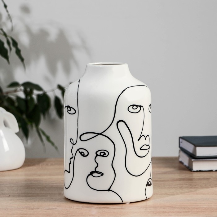 Ваза керамика настольная "Пикассо" (ручная роспись) лица, h-21,5 см d-6 см, чёрно-белый