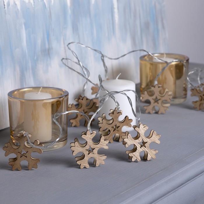 Гирлянда «Нить» 2.5 м с насадками «Снежинка», IP20, прозрачная нить, 10 LED, батарейки AAх2 (нет в комплекте), свечение тёплое белое