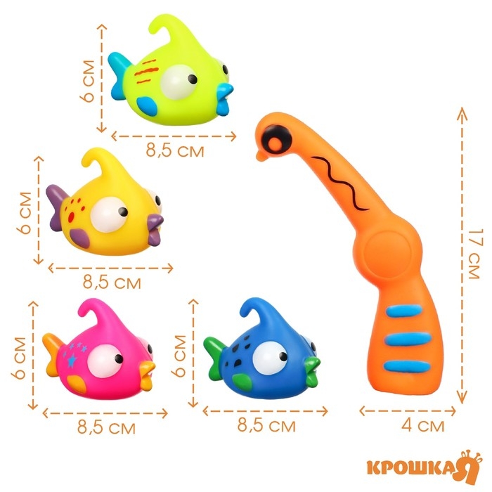 Набор резиновых игрушек для ванны «Поймай рыбку», 5 шт, с пищалкой, Крошка Я