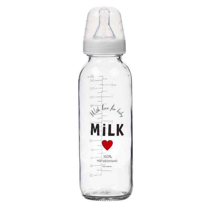 Бутылочка для кормления стекло «Milk», классическое горло, 250 мл., от 3 мес.