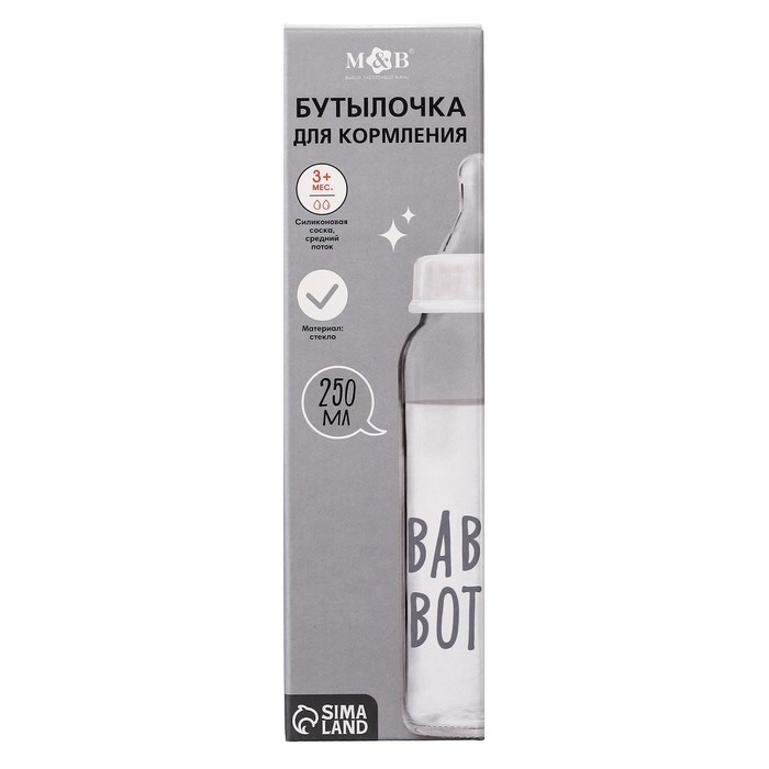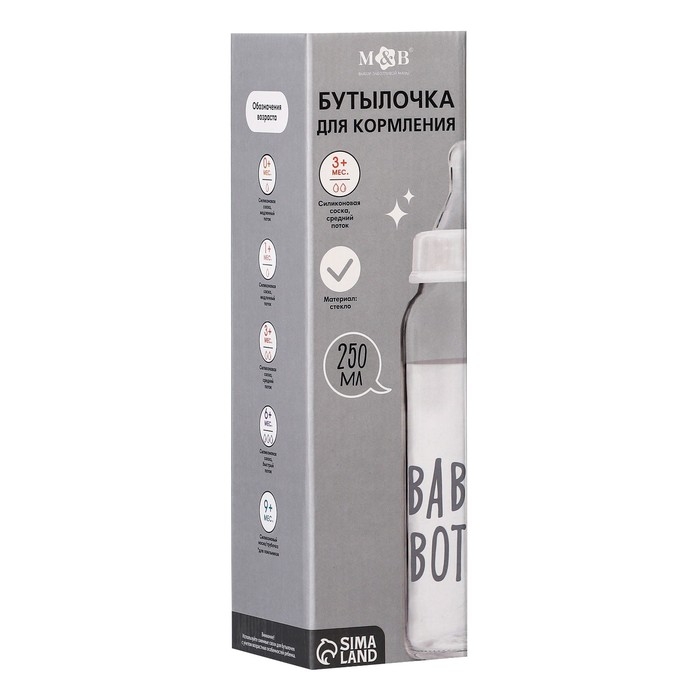 Бутылочка для кормления стекло «Baby bootle», классическое горло, 250 мл., от 3 мес.