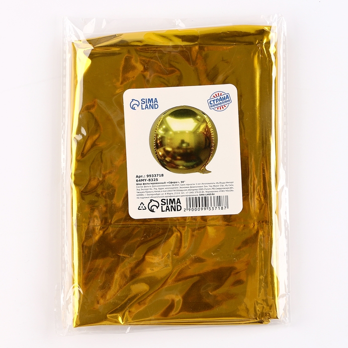 Шар фольгированный 50" «Сфера золото», под воздух