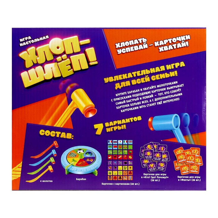 Настольная игра на реакцию «Хлоп-шлёп», молоточки, до 4 игроков, 3+