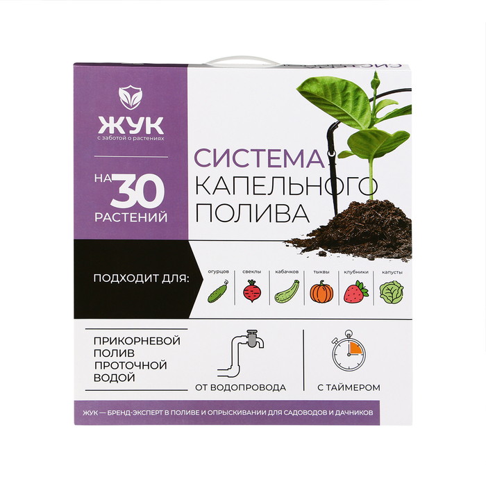 Набор капельного полива от водопровода, на 30 растений, с таймером, «Жук»