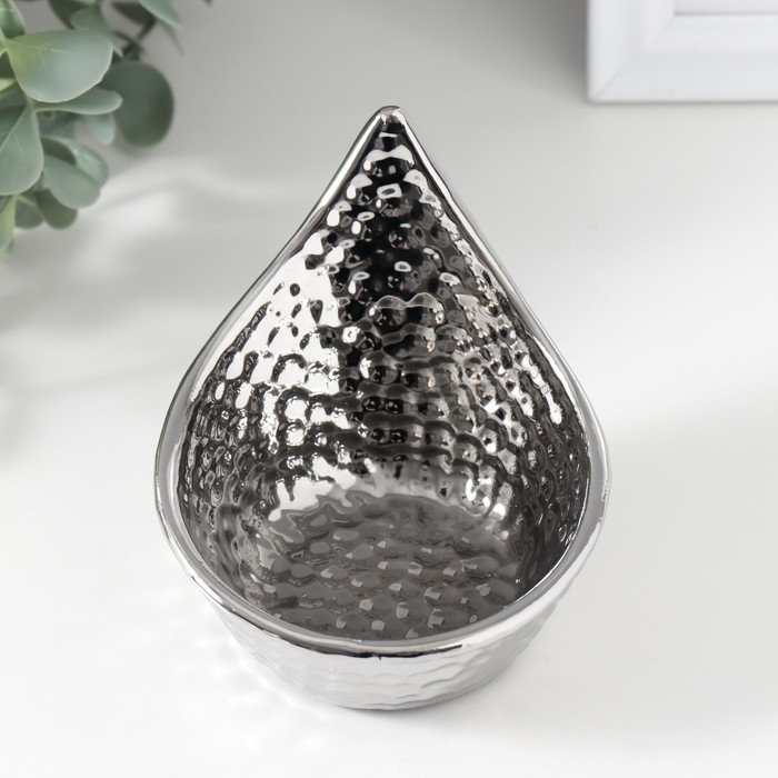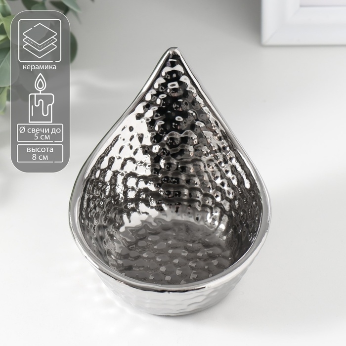 Подсвечник керамика на 1 свечу "Капля" d=5 см серебро 11х9х8 см