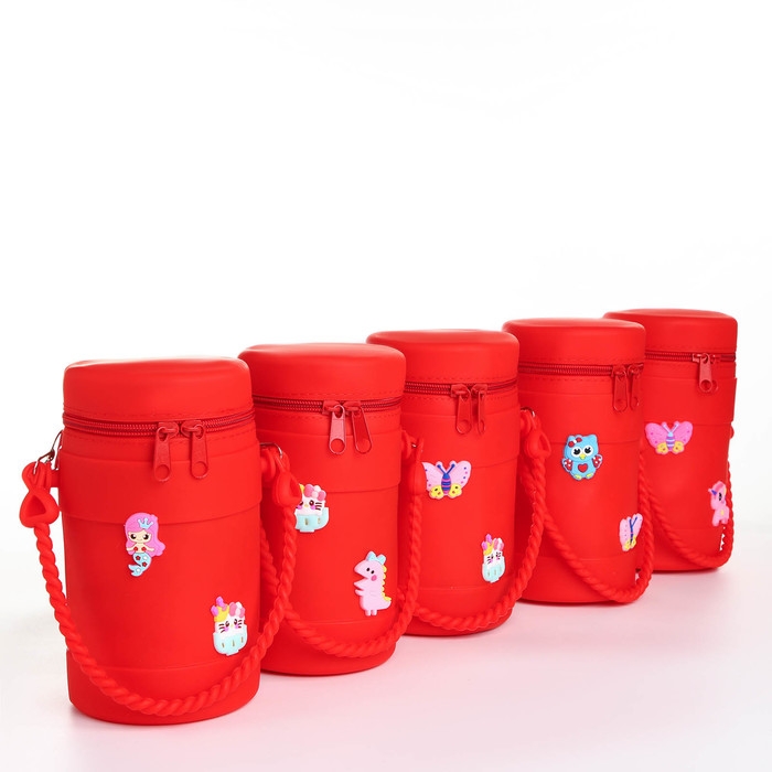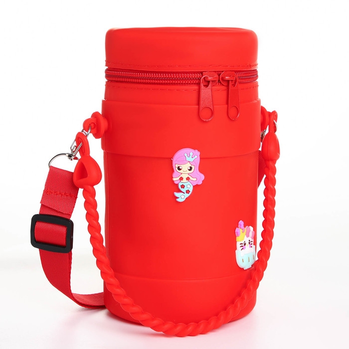 Сумка детская на молнии, наклейки МИКС, цвет красный
