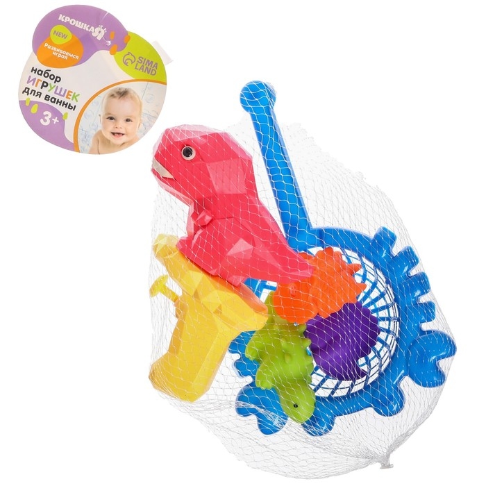 Набор игрушек для ванны «Купание с динозаврами: водный пистолет и рыбалка», 5 шт., Крошка Я
