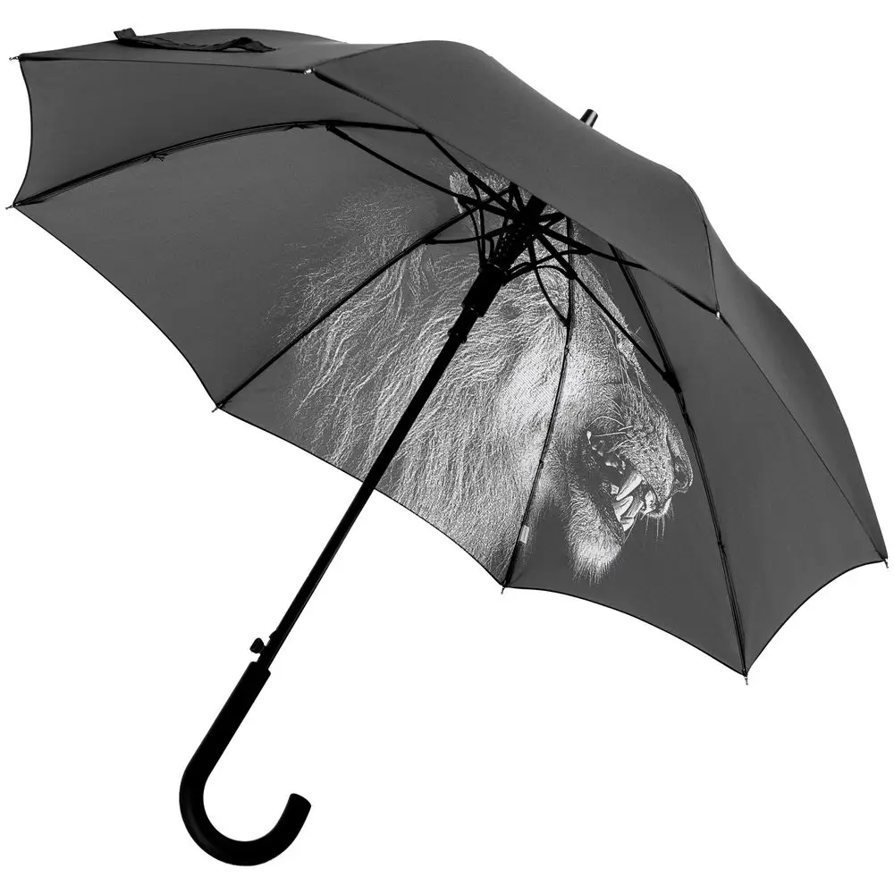 Царь всех зверей эффектно представлен в виде контрастного рисунка с проработкой самых мелких деталей. В такой компании новые подвиги не заставят себя ждать, ведь лев — символ силы, бесстрашия и мудрости.Зонт-полуавтомат. Поставляется в полиэтиленовом пакете.