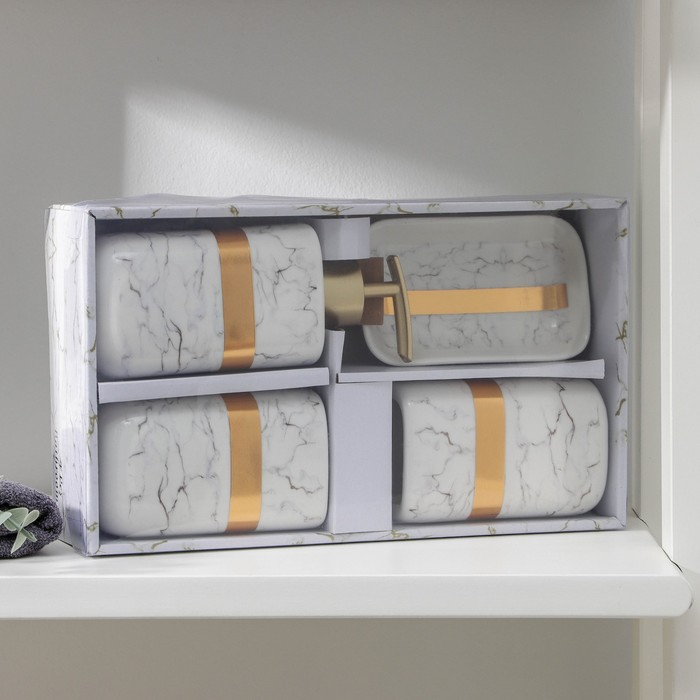 Набор аксессуаров для ванной комнаты «Кохалонг», 4 предмета (мыльница, дозатор для мыла, 2 стакана), цвет белый