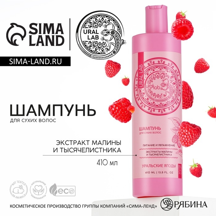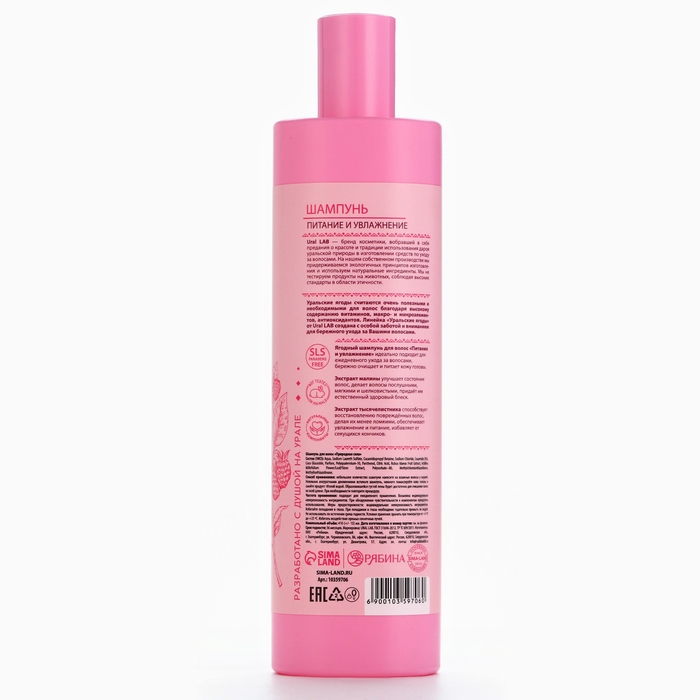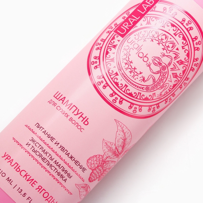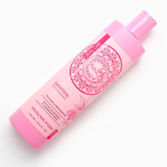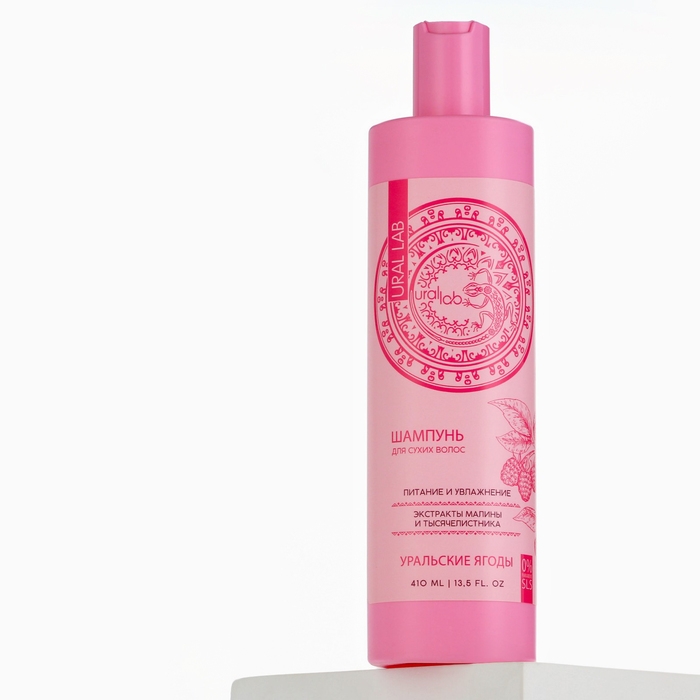 Шампунь для волос с экстрактом малины и тысячелистника, питание и увлажнение, 410 мл, URAL LAB