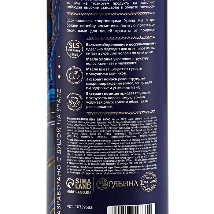 Бальзам для волос, комплекс масел и экстрактов, укрепление и восстановление, 470 мл, URAL LAB