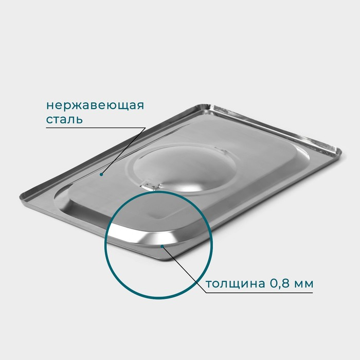 Крышка из нержавеющей стали к гастроемкости 1/4, 26,5×16,5 см толщина 0,8 мм