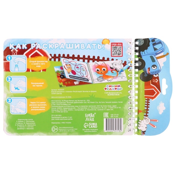 Водная раскраска с глазками «Рисуй водой. Веселье на ферме», Синий трактор