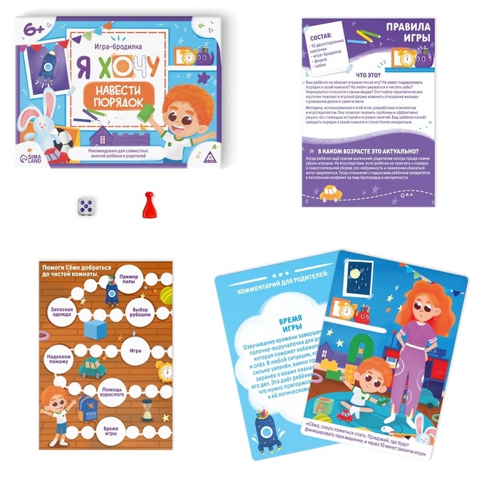 Настольная игра бродилка «Я хочу навести порядок», 15 карт, кубик, фишка, 3+