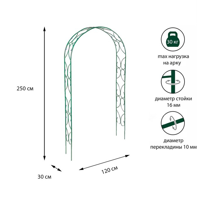 Арка садовая, разборная, 250 × 120 × 30 см, металл, зелёная, «Узор-2»