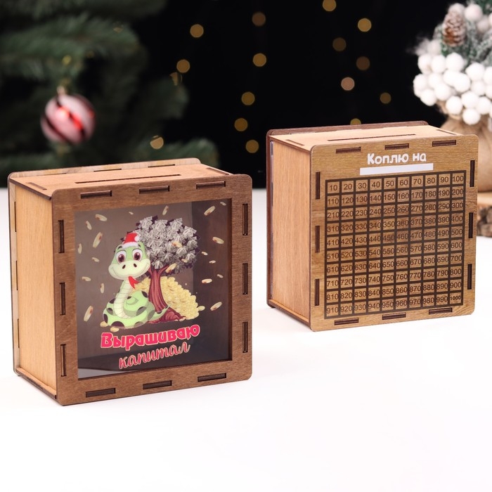 Копилка новогодняя "Выращиваю капитал!" символ года, дерево, 14 х 14 х 8 см