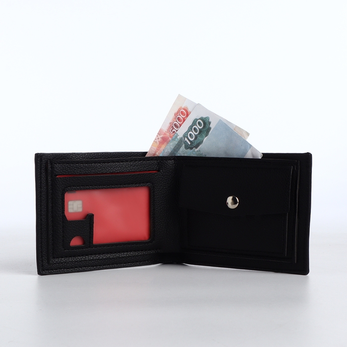 Портмоне мужское без застёжки, отдел для карт, монет, цвет чёрный